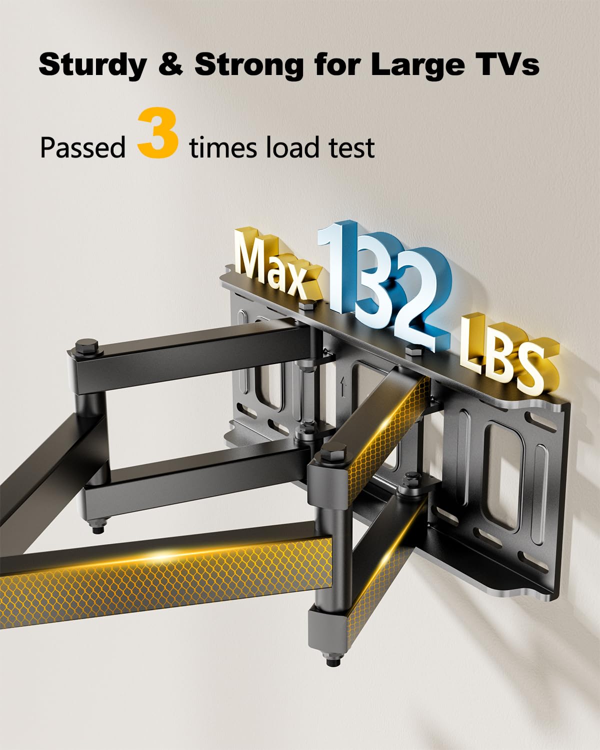- {Sturdy and Reliable}This swivel tv mount 65 inch+ is built with sturdy 6 section steel arms construction, , all of our tv mounts has passed 3 times loading test,safe to protect your kids and pets. It's the best wall tv mount 70 inch for your family.