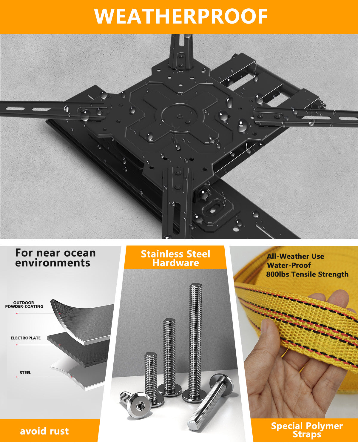 Gazebo TV Mount Strap-Type TV Mount Wall Bracket for 26-65" TVs/Monitors Portrait to Landscape Rotating for Outdoor Use No Drilling Required | 88lbs Load Capacity l for MultiShaped Poles