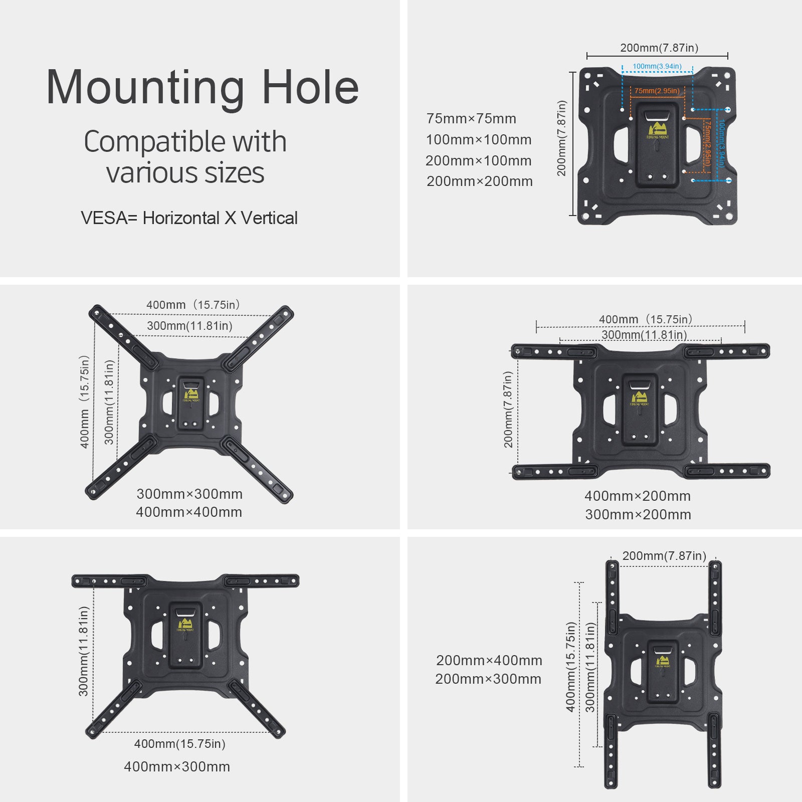 | Movement Type | Articulating/Swivel/tilt/rotate/full-motion/long extension |